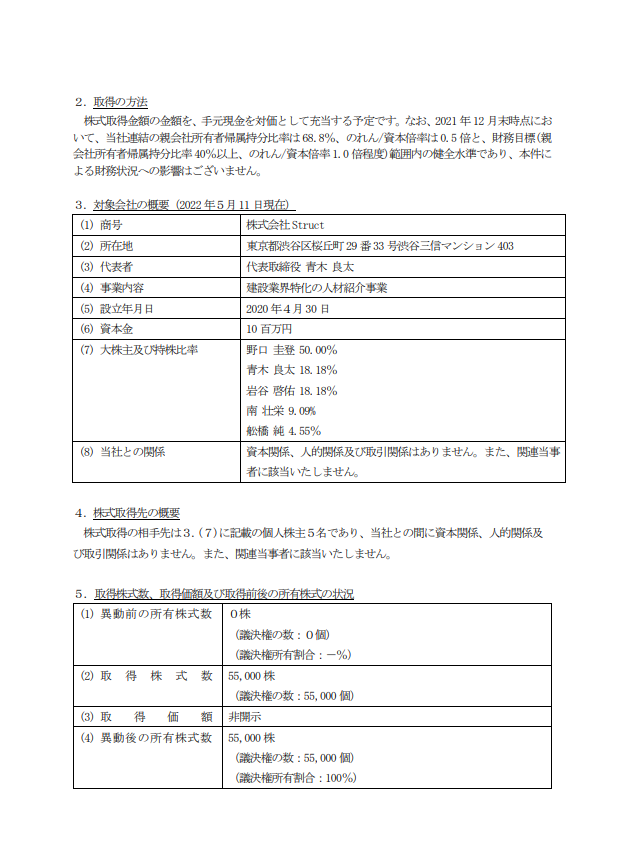 株式会社じげん(本社:東京都港区、代表取締役 社長執行役員CEO:平尾丈、以下 じげん、東証プライム:3679)は、株式会社Struct(本店所在地:東京都渋谷区、代表取締役:青木 良太、以下「Struct」)の株式を取得し、子会社とすることを決議いたしましたので、下記の通りお知らせいたします。